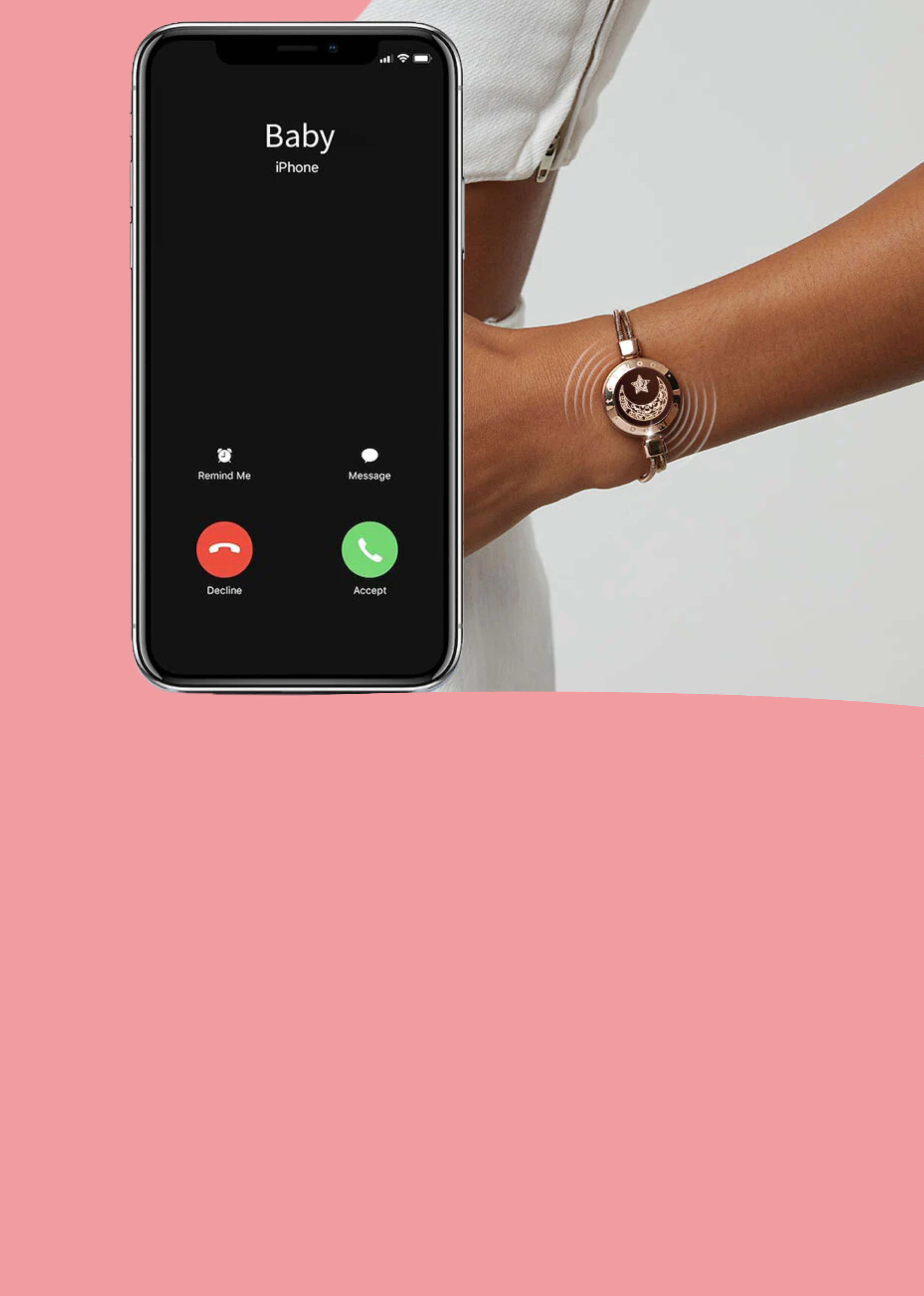 A touch from you lights up and vibrates your partner’s bracelet, bridging any distance with a shared moment of connection.